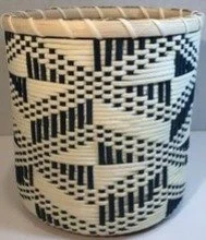 This is a striking patten that is started using a double slotted, round wooden base. You will first weave a simple inner basket of 3/8” flat reed. This becomes the mold for the outer basket. Dyed stakes will be inserted on the outside and the basket is continuous weave with 4 mm Hamburg cane. Twill experience and reading a pattern is a must.