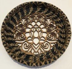 Using glycinin treated pine needles, students will learn how to attach the needles to a 4” laser cut base using the chain stitch. Several rows of the wheat stitch will bring up the sides and the rim is finished in the fern stitch. Stitching/coiling pine needles is a lovely hobby that you can do and take with you anywhere. Bases could be different depending on availability. Students should like hand sewing.